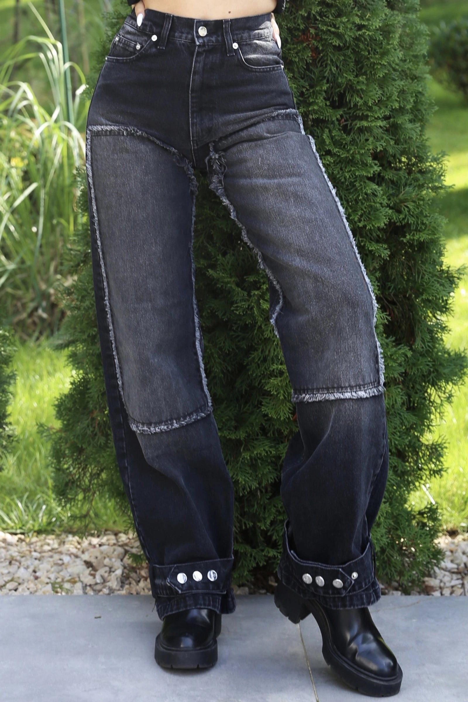 Pentru o aparitie casual și modernă, îți prezentăm acesti blugi dama cu petic ,largi si cu talie inalta .