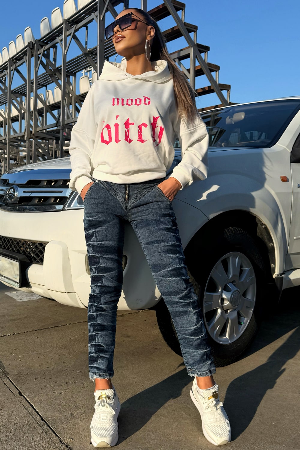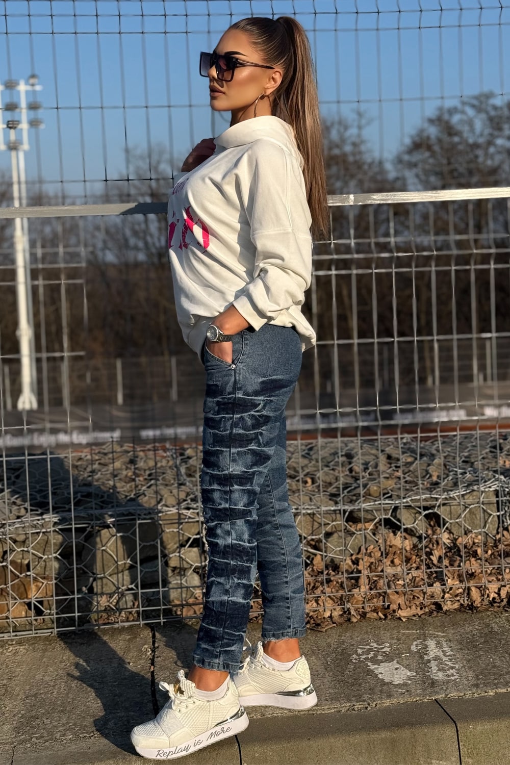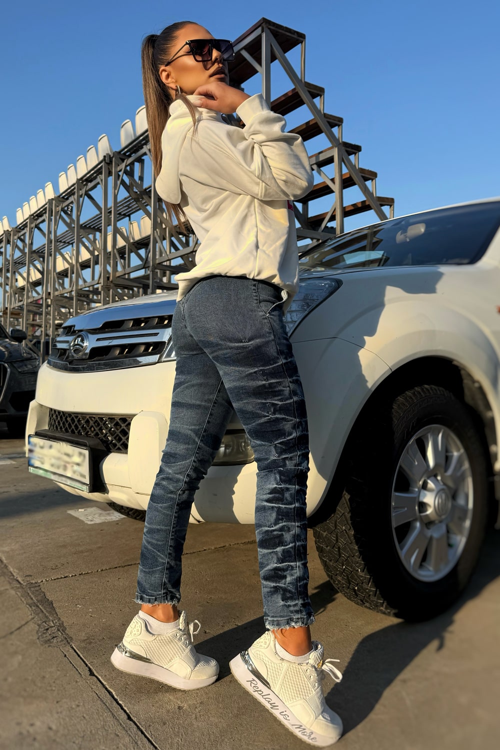 Blugii prezinta taieturi si cusaturi pe spate pentru a oferi efectul de push-up si buzunare oblice functionale.