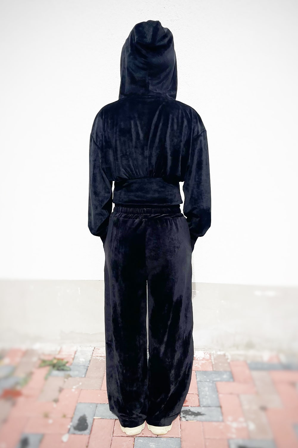 Acest trening dama catifea neagra , din doua piese pentru femei active este un melanj perfect intre modern si confort.