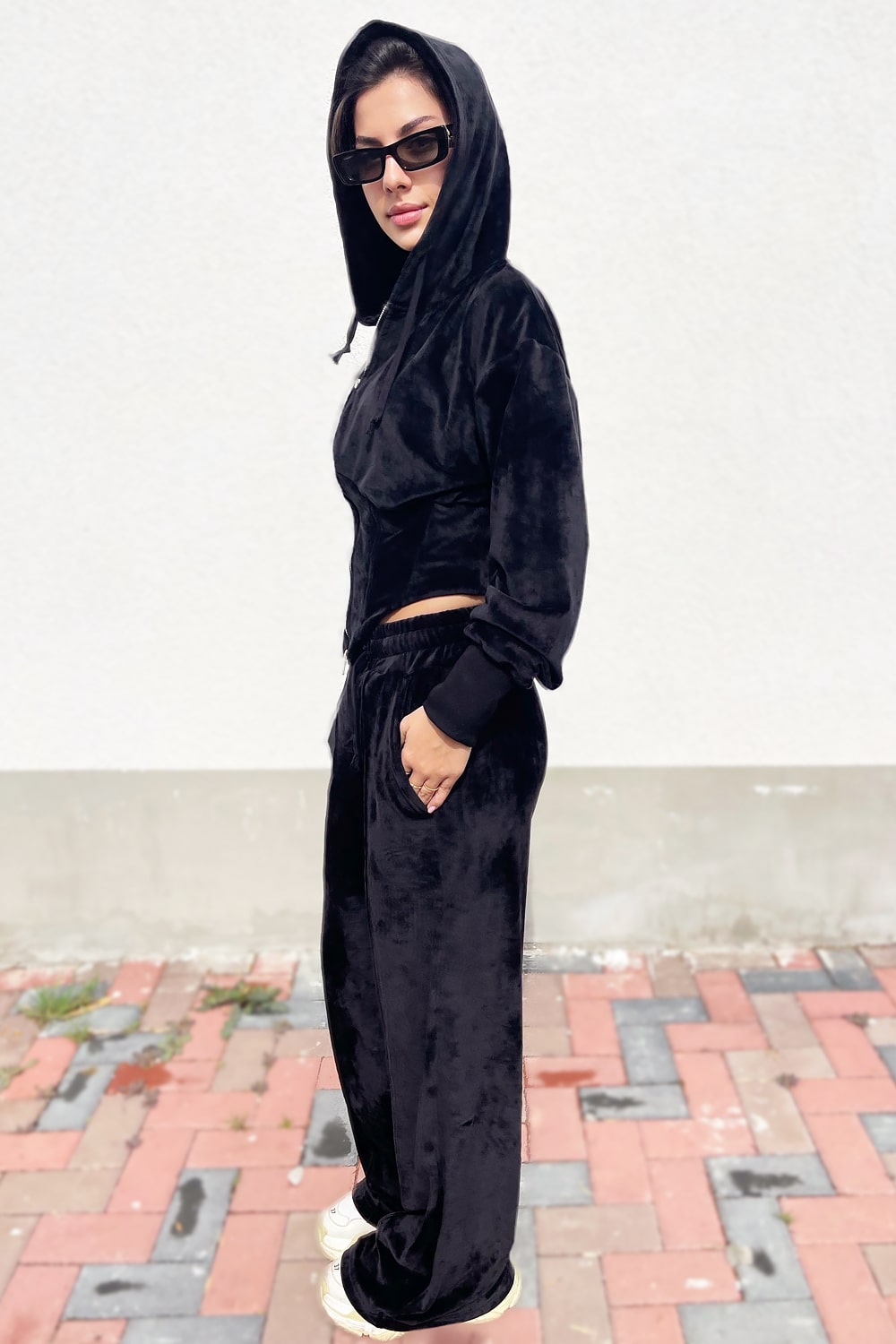 Pregătit Pentru Orice Activitate: Fie că ești activă sau dorești să te relaxezi, acest trening dama catifea neagra te însoțește în orice activitate cu stil și funcționalitate.