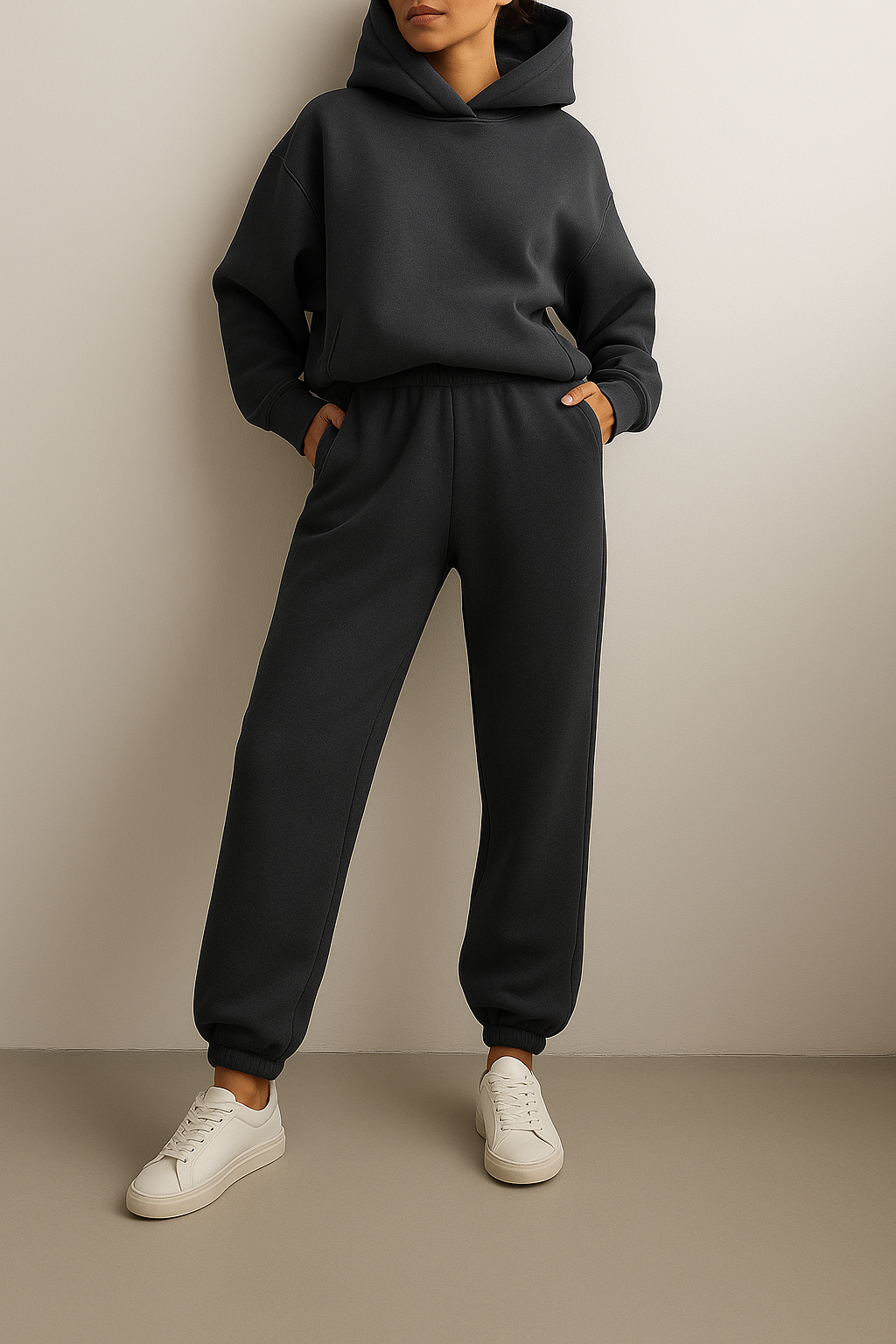 Pregătit Pentru Orice Activitate: Fie că ești activă sau dorești să te relaxezi, acest trening dama din bumbac cu bluza oversized te însoțește în orice activitate cu stil și funcționalitate.